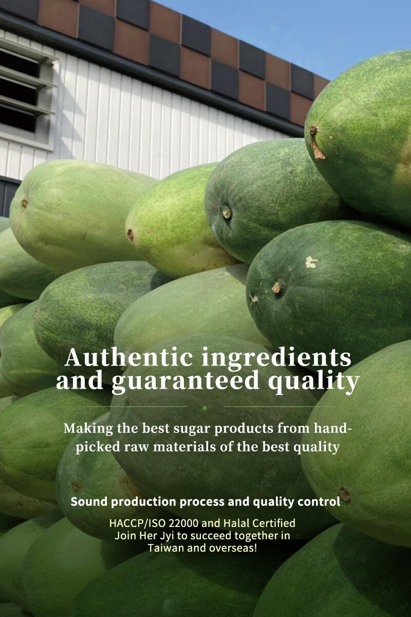 We specialize in high-quality sugar products including winter melon tea bricks, traditional rock sugar, Taiwanese brown sugar, and refined sugar and raw sugar. The winter melon tea bricks in particular were sold throughout Taiwan. A variety of different products and specifications were offered to meet customer requirements. Products undergo regular testing and our factory has passed both HACCP/ISO 22000 food safety certification and Halal certification. Sound production processes and quality control from the source to the end product ensure customer peace of mind.